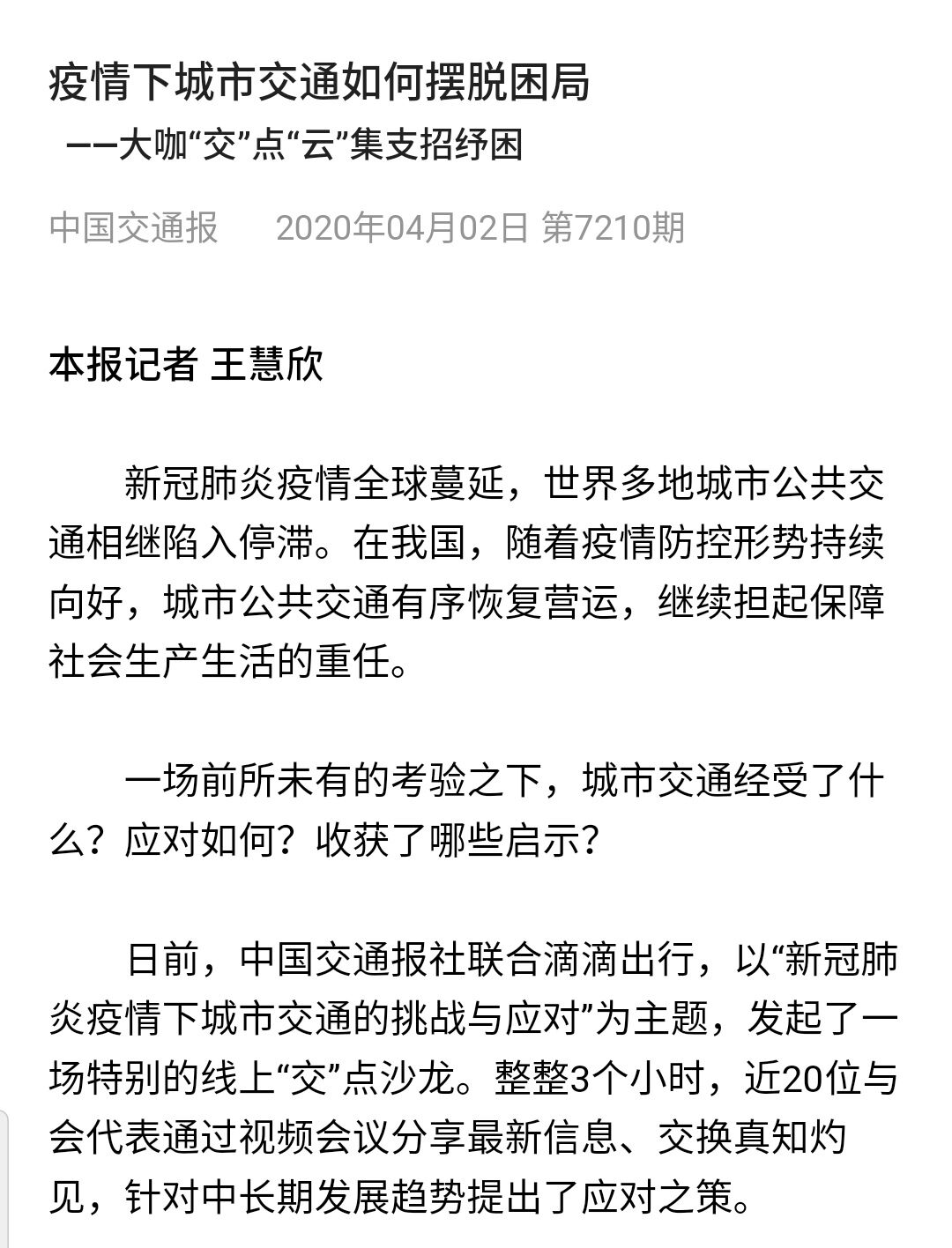 疫情下城市交通如何擺脫困局