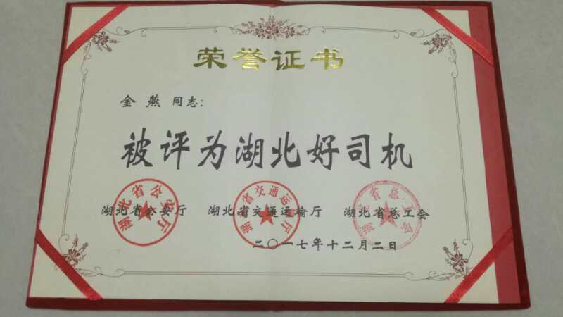 金燕同志榮獲“湖北好司機(jī)”稱號(hào)的確實(shí)至名歸,值得我們所有駕駛員學(xué)習(xí)。