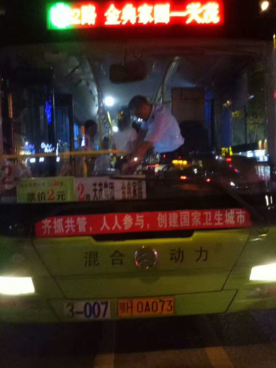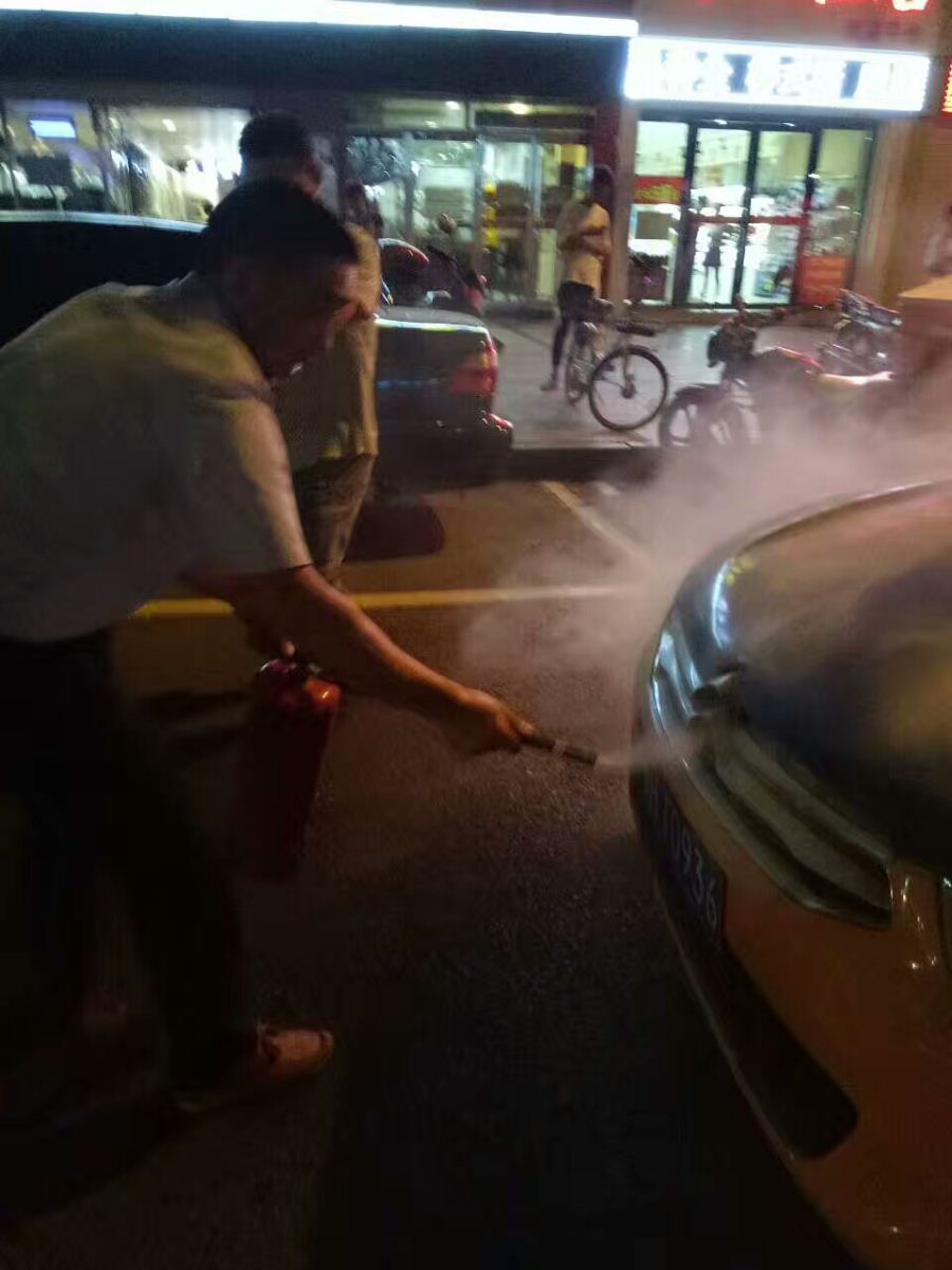 7月21日晚9時(shí)10分左右,公交集團(tuán)三公司2路車駕駛員陳旭駕駛鄂H0A073號(hào)行駛至金地廣場(chǎng)站,突然聽到馬路對(duì)面有人大聲疾呼“著火啦!救火!”,陳師傅忙停穩(wěn)車,只見對(duì)面一的士引擎蓋冒煙起火,他立即拿起公交車上的滅火器快跑到馬路對(duì)面,將出租車的火撲滅。