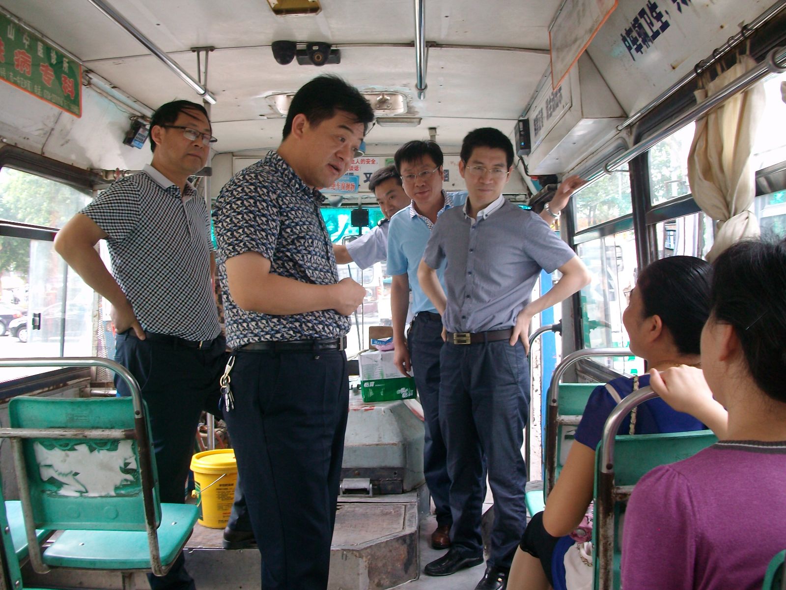 當日中午12時,正值高溫時刻,伍應(yīng)彪等領(lǐng)導(dǎo)冒著炎炎夏日來到?;圮囌?,看望慰問高溫下堅守工作崗位的公交職工。在16路、21路、22路線正待發(fā)班的公交車前,伍應(yīng)彪上車與一線駕駛員親切握手,詢問了解駕駛員們的身體和工作情況,并聽取了一公司負責(zé)人對改善職工們的工作和休息環(huán)境等工作匯報。在與駕駛員們親切交談中,伍應(yīng)彪親自為駕駛員們送上了礦泉水、毛巾、人丹、清涼油等防暑降溫用品。同時,他還向部分乘客征求了改善乘車環(huán)境的意見和建議。