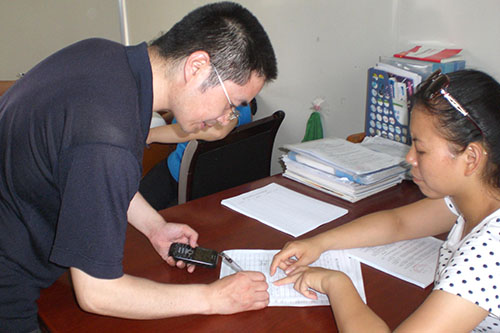 圖5為工作人員為愛(ài)心助考車(chē)粘貼活動(dòng)標(biāo)識(shí)