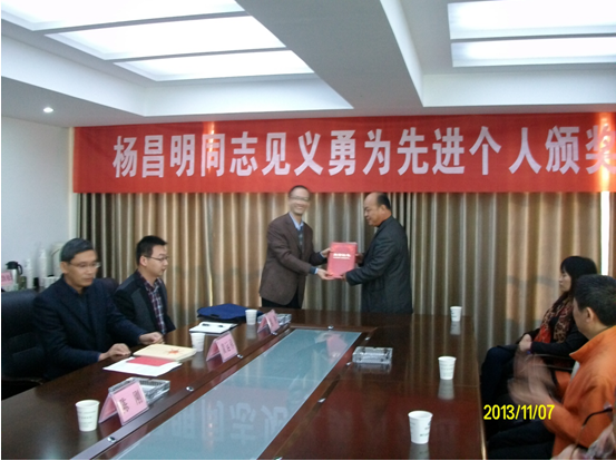 楊昌明,52歲,退伍軍人,也是荊門公交集團一公司39路駕駛員。10月6日下午,楊昌明駕駛鄂H9337公交汽車,行駛至荊門火車站附近,車上一位帶孩子的婦女說錢包被人偷了。車上乘客反映,錢包是婦女正要上車時被小偷偷的,前面跑的那個人就是小偷。楊昌明聽到后,迅速關(guān)上車門,踩下油門,追向小偷。在追上小偷后,楊昌明便打開車門跳下車向小偷猛追過去。小偷見楊昌明窮追不舍,只好扔下錢包跑進一條小巷子。本著安全接送乘客,楊昌明撿起錢包后回到車上,并當著乘客的面清點了錢包。錢包內(nèi)裝有現(xiàn)金6200元、多張存折(共58000元)、身份證等。隨后,經(jīng)公交公司報案,錢包由民警交還失主。市見義勇為促進會及東寶區(qū)社會管理綜合治理委員會表示,楊昌明見義勇為、弘揚正氣的事跡經(jīng)包括本報在內(nèi)的媒體宣傳報道后,受到社會各界廣泛好評和群眾的一致稱贊。經(jīng)研究決定,授予楊昌明見義勇為先進個人稱號,并分別獎勵1000元、500元人民幣。