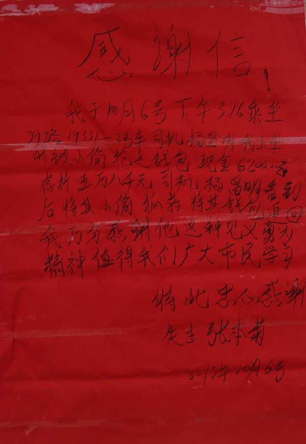 公交公司相關(guān)人員表示,對(duì)于楊昌明見(jiàn)義勇為的行為,肯定會(huì)給予獎(jiǎng)勵(lì)。記者還了解到,失主張女士于7日將一封感謝信交到了楊昌明所在的公交公司,再次表達(dá)了她的感激之情。