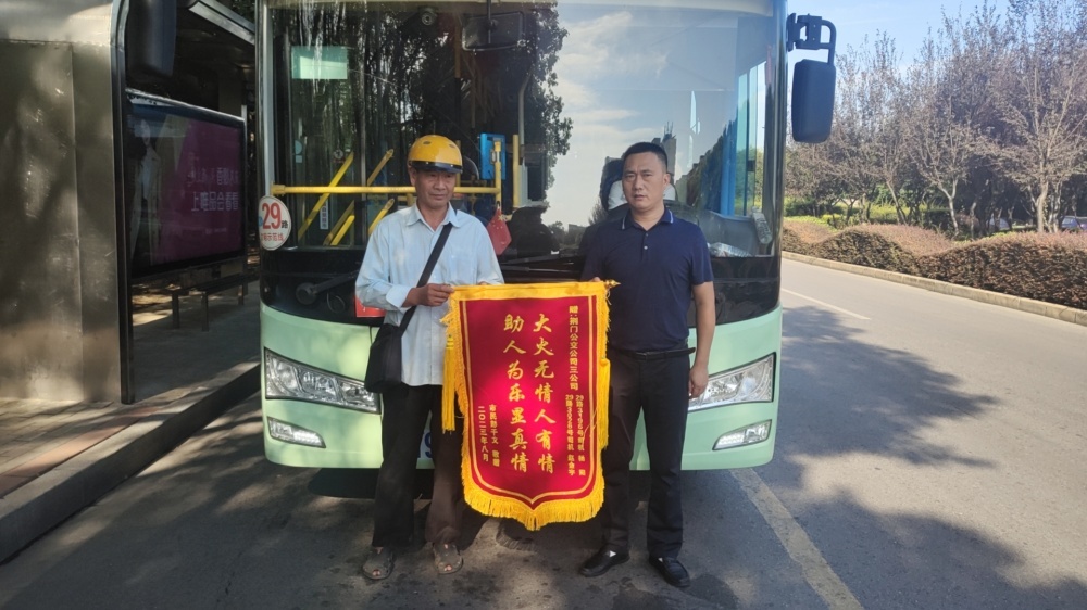 9月4日,市民賀先生拿著一副寫有“拾金不昧 品德高尚”的錦旗交給市公交集團二公司相關負責人手上,希望轉交給3路李學鋒師傅,言語間滿是感激。