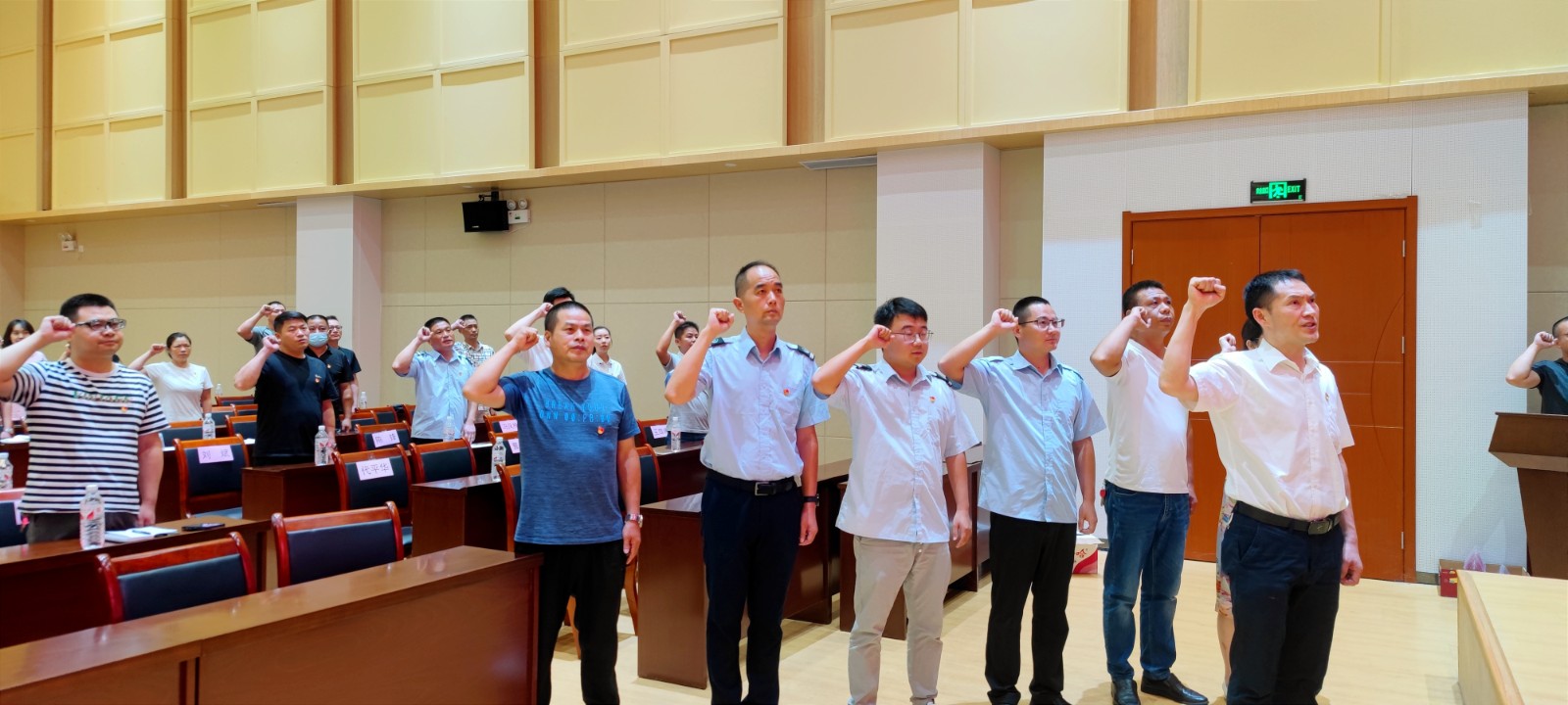 在“七·一”黨員宣誓、“兩優(yōu)一先”表彰大會環(huán)節(jié)。大會首先伴隨著雄壯的國歌聲正式拉開序幕。然后,領(lǐng)誓人公汽一公司書記肖剛與新進(jìn)正式黨員、納新預(yù)備黨員,以及在場老黨員們一起重溫了入黨誓詞。其次,新進(jìn)正式黨員為納新的預(yù)備黨員佩戴了黨徽。